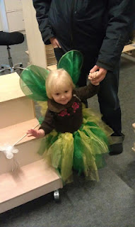 Så efter at have søgt inspiration blandt andet her. Blev der fremtryllet et skørt med organza i stedet for tyl. Der blev lavet vinger. Så i morges kunne jeg sende en lille fe afsted i vuggestue.
