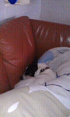 Øv, jeg er syg. Ville så gerne pakke ud og indrette det nye hus. Men må blive på sofaen sammen med hunden Sofus…