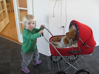 Jeg har også en dukkevogn stående på loftet til Solbjørg. Måske hun er ved at være stor nok til den…