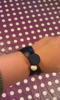 En af de fede ting ved at arbejde i SFO er at få lov til at være med til at lave kreative ting og eksperimentere med ting. I denne uge har vi arbejde meget med smykker – og her er et armbånd jeg har lavet. Det er en lædersnor/bånd med trykknapper og så påsat nogle stofknapper.